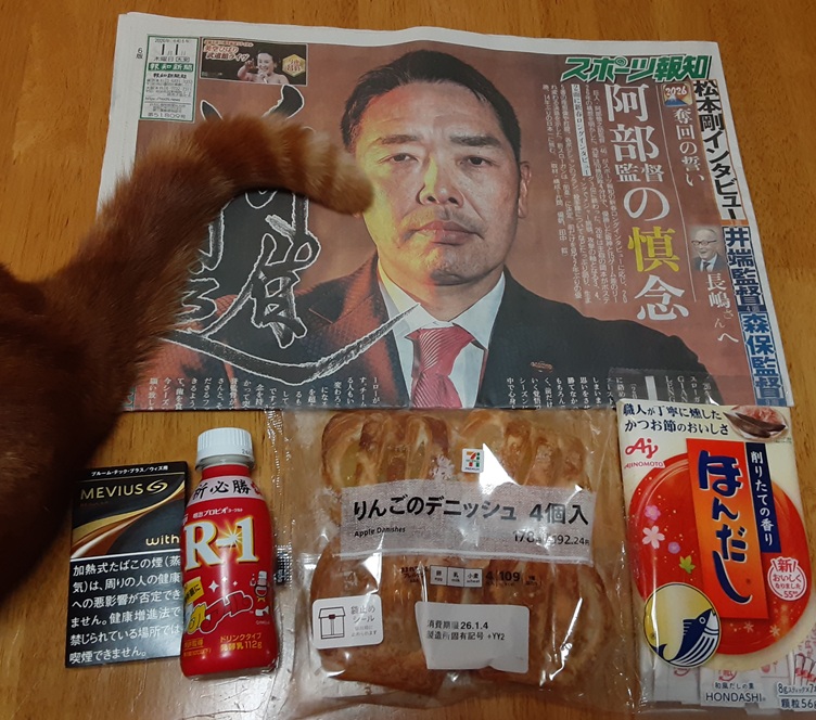 新聞、電子タバコ、R-1、夫のお気に入りのりんごデニッシュはおまけ