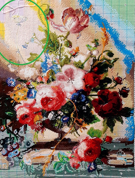 同じ色の糸で広い部分を刺すのは複雑な部分よりある意味大変。