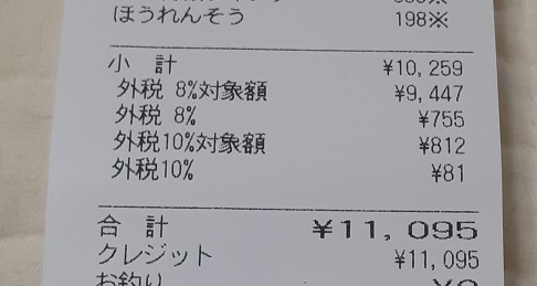 お米も日用品も買わなかったのに食材だけで11095円(><)