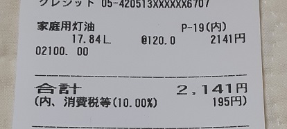 ついでに灯油を入れて2141円