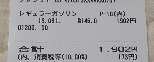 最後はガソリンスタンドで1902円