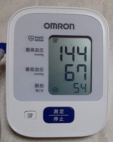 ヒヤヒヤ測った今朝の血圧は144。