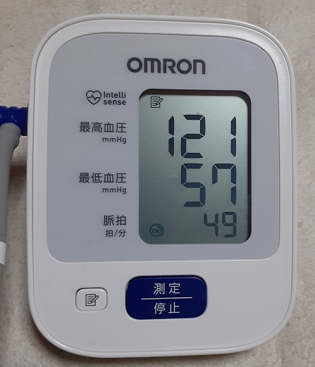 さて薬を飲み過ぎた昨夜の血圧は何と【121】