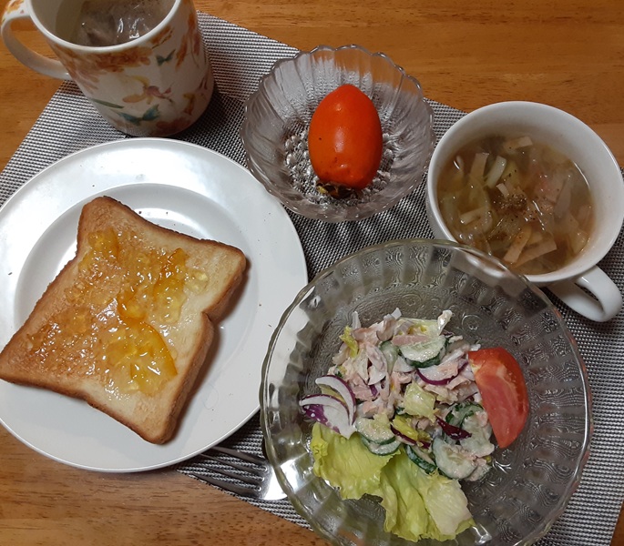 マーマレードを塗ったパンは8枚切り。