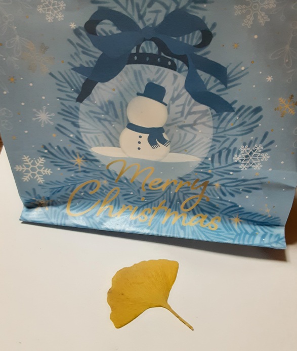 午前中にバッグを整理していたら、イチョウの葉っぱが一枚出て来ました。