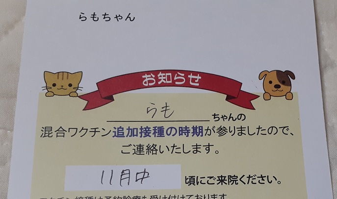 らもちゃん♡のワクチン接種もある。