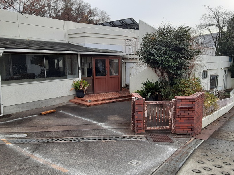 手入れが行き届いていない、園舎の入り口