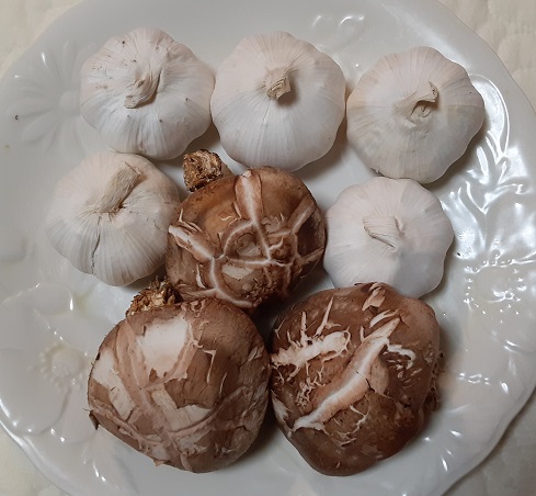 (先日のだるま市で買った激安国産ニンニクとどんこは娘と半分こ(^^))