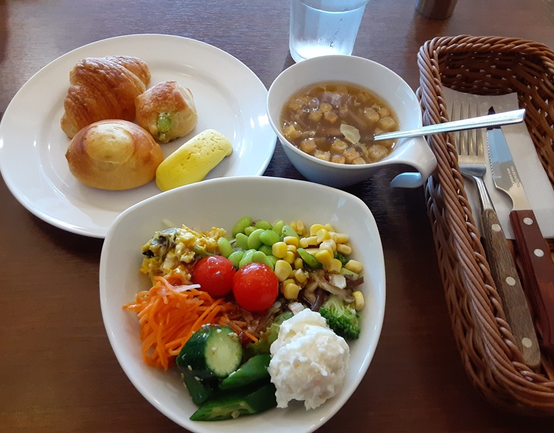 サラダ、スープ、パン、デザートは食べ放題(><)
