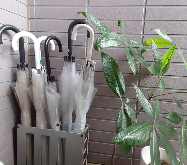 玄関横の傘入れが気になる。