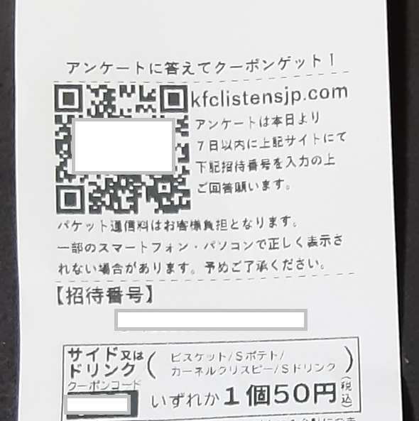 1週間前のレシートのQRコードからアンケートに答えたら